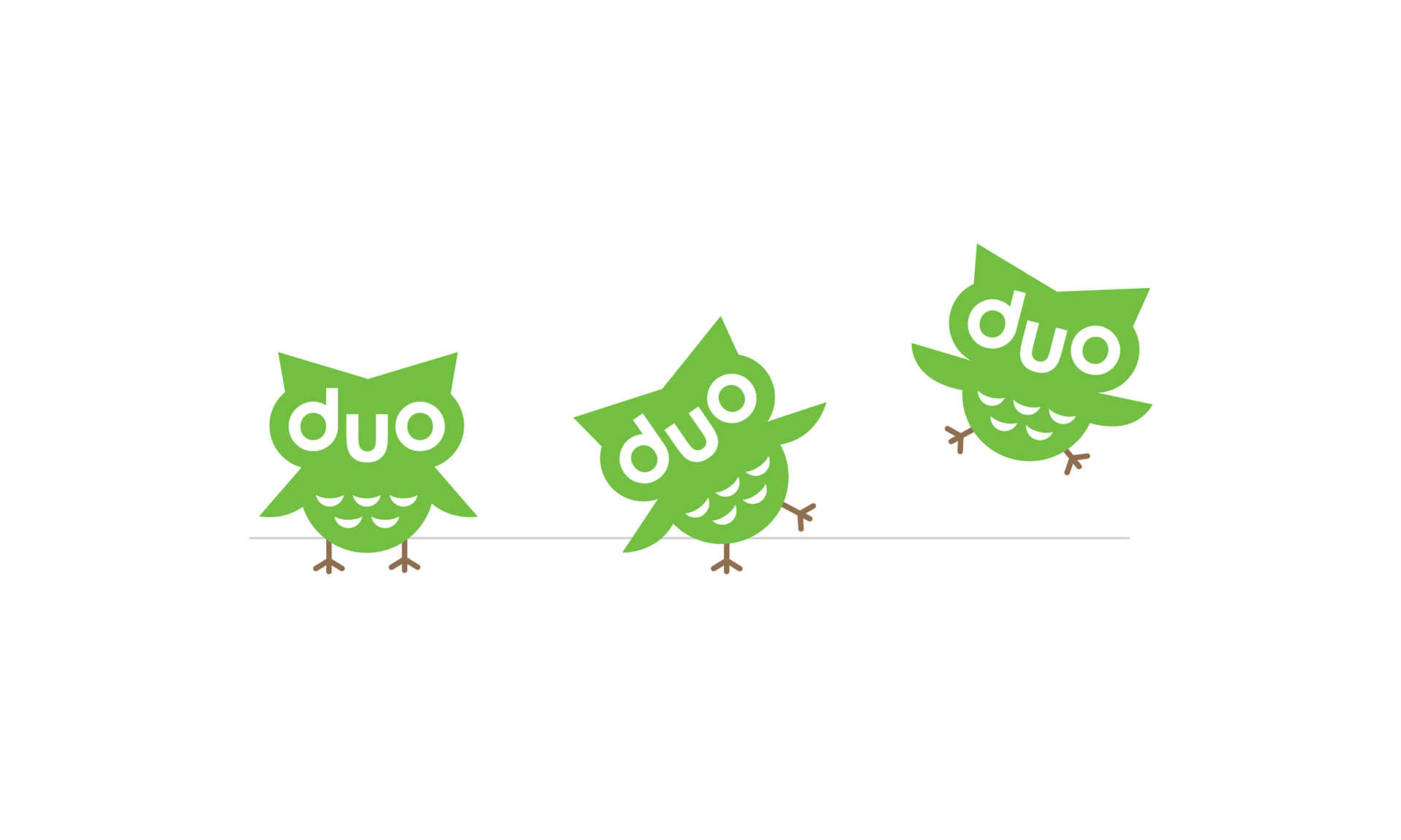 Meet 'Duo' the cheery mascot who helps guide you through your language learning lessons. This original identity system remained in use until the brand update in 2019.